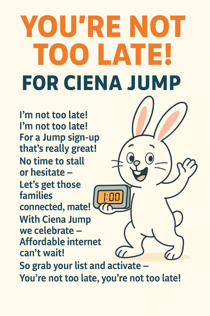 Unlike the White Rabbit in Alice in Wonderland you are not too late to sign families up for Ciena Jump.
